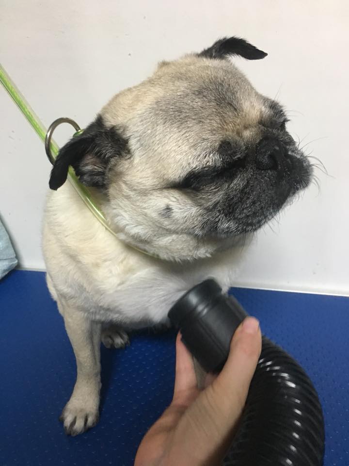 “Ooooo that’s the spot!” Shirley the blind pug is getting really confident with her grooming!